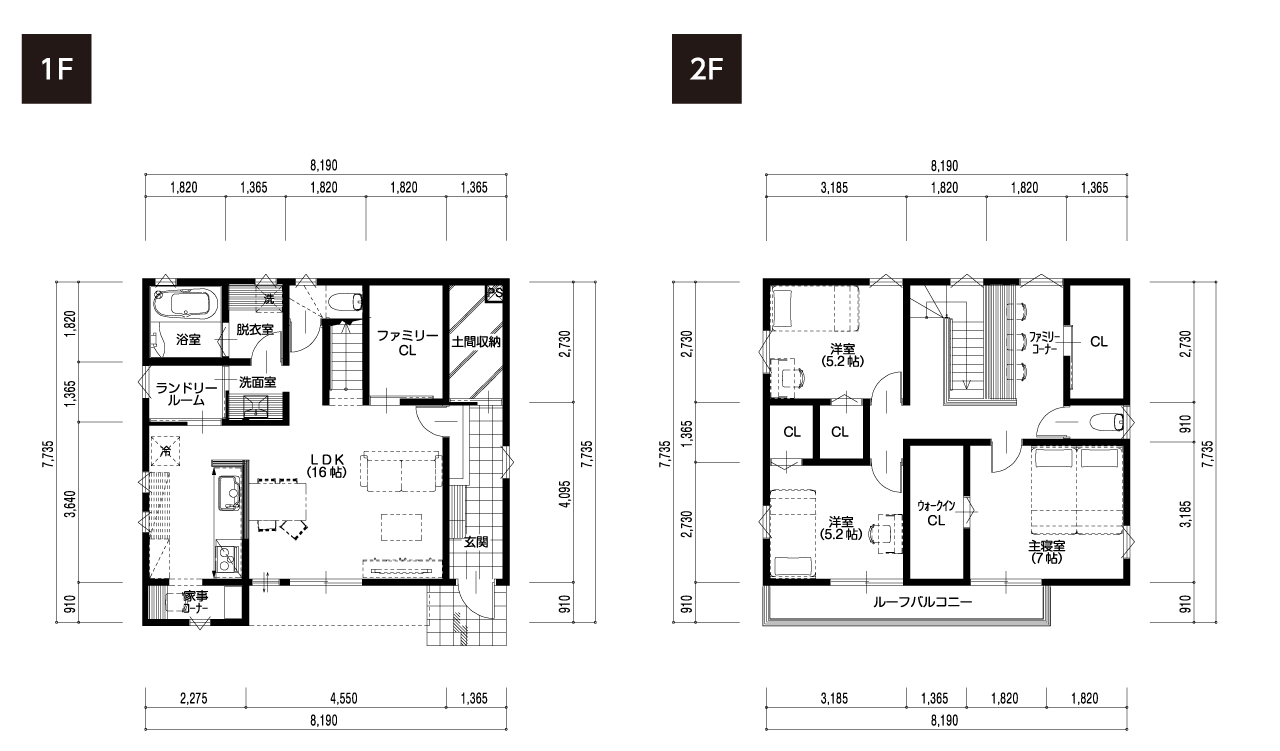 「洗う」「干す」「しまう」といった作業が一つの部屋で完結するので効率的。 また、室内干しのスペースを1階にも2階にも確保することで、雨の日や洗濯物が多い日にも安心です。